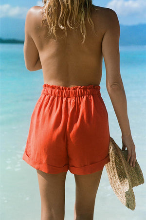 Such an effortless essential for your holidays and beyond! The highly flattering design of our SUMMER shorts and their super soft feel of light-weight, 100% French flax linen make them the perfect addition to your wear-forever summer wardrobe. They feature an elasticated waistband for extra comfort and side pockets with beige lining to reduce transparency. Style them with our SUMMER linen shirt-dresses for an instant sophisticated sunshine outfit you will live in all summer long.