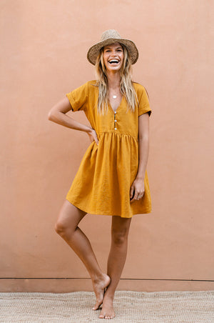 The perfect all-round dress for your sunchasing adventures! This cute babydoll dress with side pockets is our absolute bestseller, you will live in it! Crafted from the softest linen and designed in a flowy cut, it keeps you cool even in hot climates.