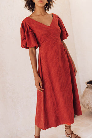 No summer wardrobe is complete without a statement dress - and this is without a doubt our favourite ROVE design of all time! The floaty, feminine silhouette has us dreaming of balmy evenings in great company. We are in love with the gorgeous puffed sleeves and the sophisticated back tie detail. Fully lined and crafted from a beautiful, subtly textured cotton-linen-viscose that feels equally refined and effortless. A timeless favourite for your next chic escape or a chic weekend plan.