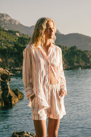 The VERANO linen shorts are your new holiday essential, combining a flattering design with the soft, luxurious feel of 100% mid-weight French flax linen. These shorts will keep you cool all summer long, making them a perfect addition to your forever wardrobe.